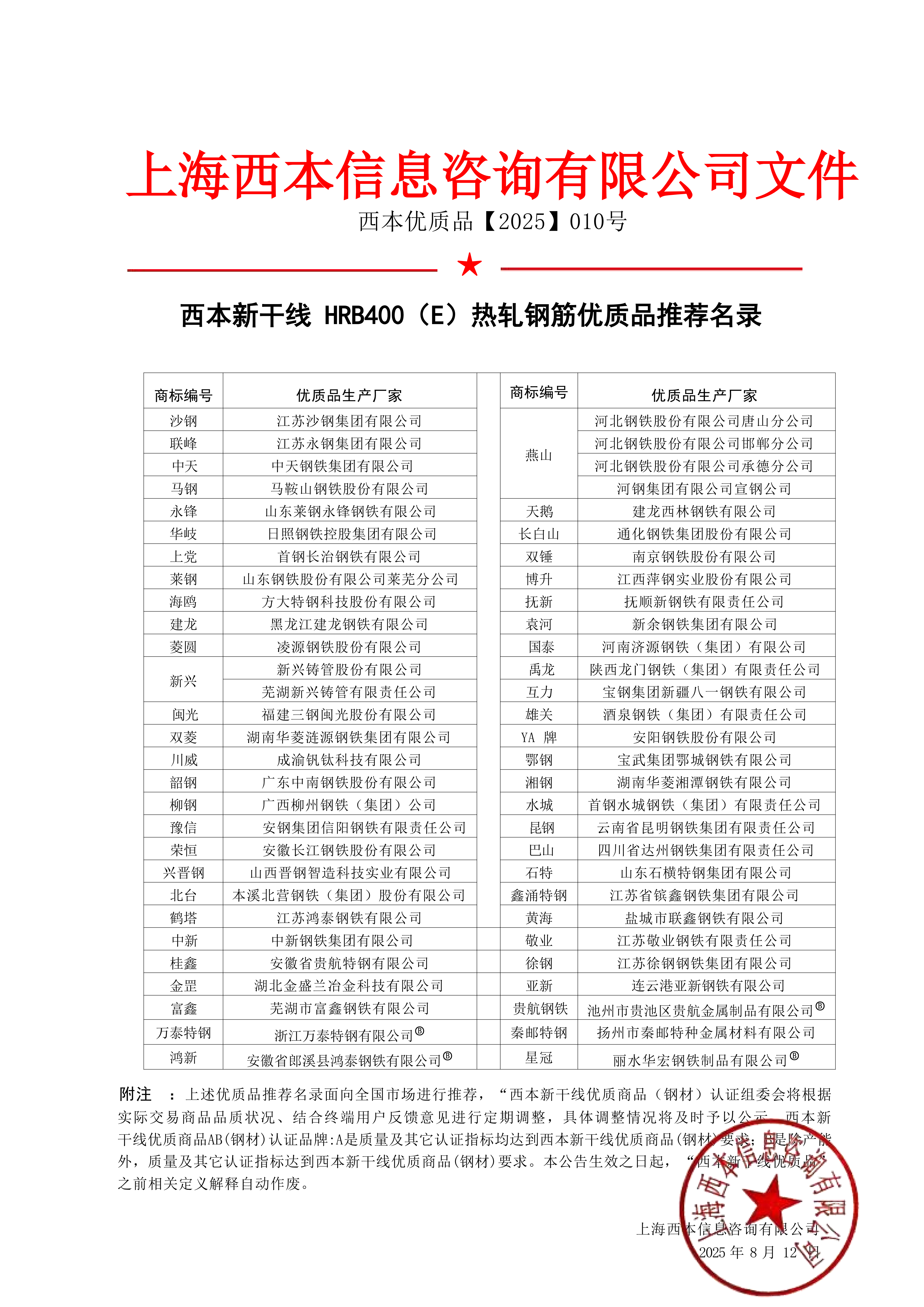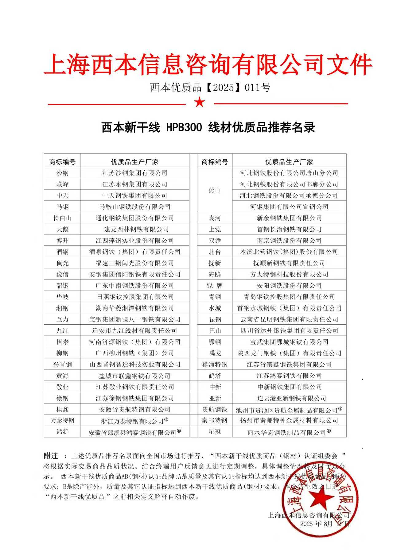 优质品名录