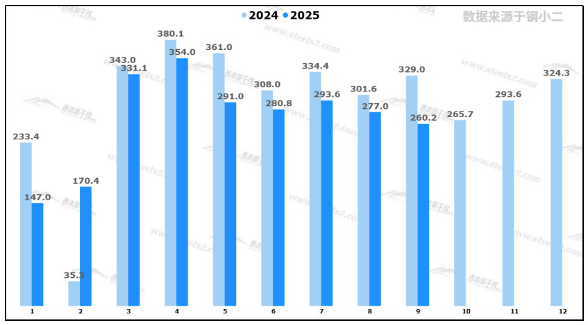 从钢厂库存来看,据中钢协数据显示,2025年9月中旬,重点统计钢铁企业钢材库存量 1529 万吨,环比上一旬减少 53 万吨,下降3.4%;比年初增加 292万吨,增长 23.6%;比上月同旬减少 38万吨,下降 2.4%;比去年同旬减少 36 万吨,下降2.3%,比前年同旬减少 47 万吨,下降 3.0%。