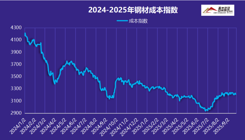 2025年09月26日15:57 来源:西本资讯摘要:综合来看,当前长流程建筑钢企盈利面接近亏损状态,钢筋供应量维持相对低位;金秋十月,秋高气爽有利施工,终端表需进一步小幅回升,社会资源步入降库通道;同时,生产成本存有支撑。另外,国家印发钢铁行业稳增长方案,后续关注政策是否有压减粗钢产量政策,以及是否出台刺激消费政策等。基于此,我们对十月份国内行情持以下判断:需求渐增、震荡偏强——预计10月份沪市优质品螺纹钢代表规格价格(以西本指数为基准),或将在3450-3600元/吨区间运行。