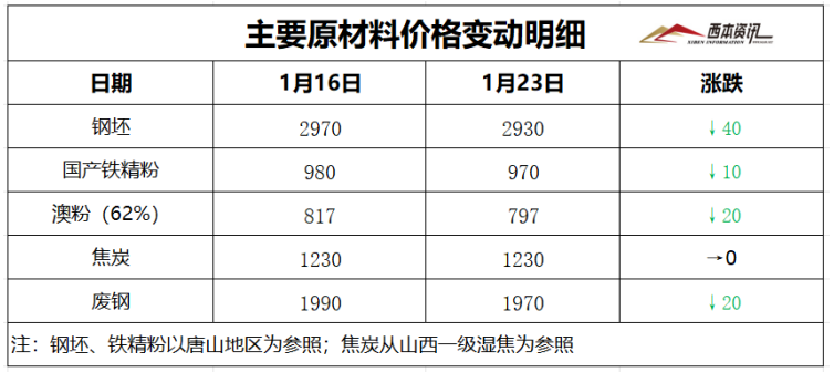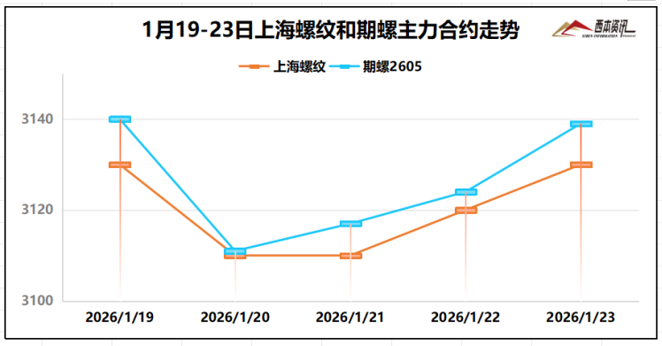2026年01月23日15:06 来源:西本资讯摘要:综合来看,高炉开工率环比回落,表观需处于低位,螺纹库存逐步累库,淡季需求持续深化,盘面多空因素交织,现货涨跌空间有限,预计,下周(1月26日-1月30日)市场价格低位调整,整体幅度为-50-30元/吨。