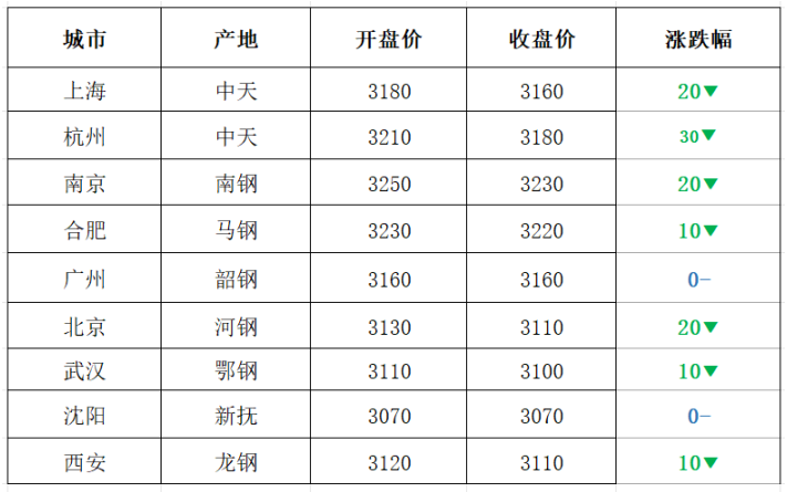 昨日开市,早盘期螺延续下跌,多数钢企维持平盘,终端用户按需采购;午后盘面跌至低位,钢坯报价小幅下跌,多地建筑钢材收市价小幅松动。夜盘期螺低位拉升,下游零星采购,需求更加清淡,市场低价换量,预计,今日全国大部建筑钢材价格弱势见跌,幅度-30-0。【易连资讯提供】