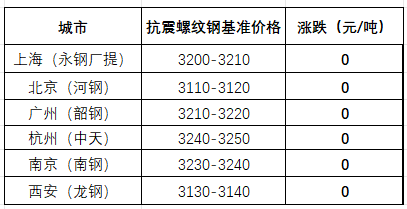 截至午间,国内部分市场螺纹钢(抗震)基价如下:上海市场3200-3210元/吨;北京市场3110-3120元/吨;广州市场3210-3220元/吨;杭州市场3240-3250元/吨;南京市场3230-3240元/吨;西安市场3130-3140元/吨。环比来看,截至午间收盘,全国主要市场一线品牌价格不变。