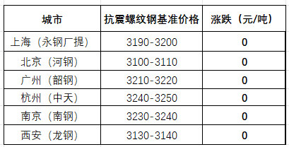 今日行情为陆续停盘,据西本跟踪统计的69个城市建材报价,开盘各地平稳为主,午后不见波动;截至收盘,上海、杭州、南京等地主导资源价格环比没有变化。据上海市场反馈,今天库提小厂抗震螺纹钢高低区间在3070-3100元,厂提永钢螺纹钢基价区间在3160-3170元/吨。