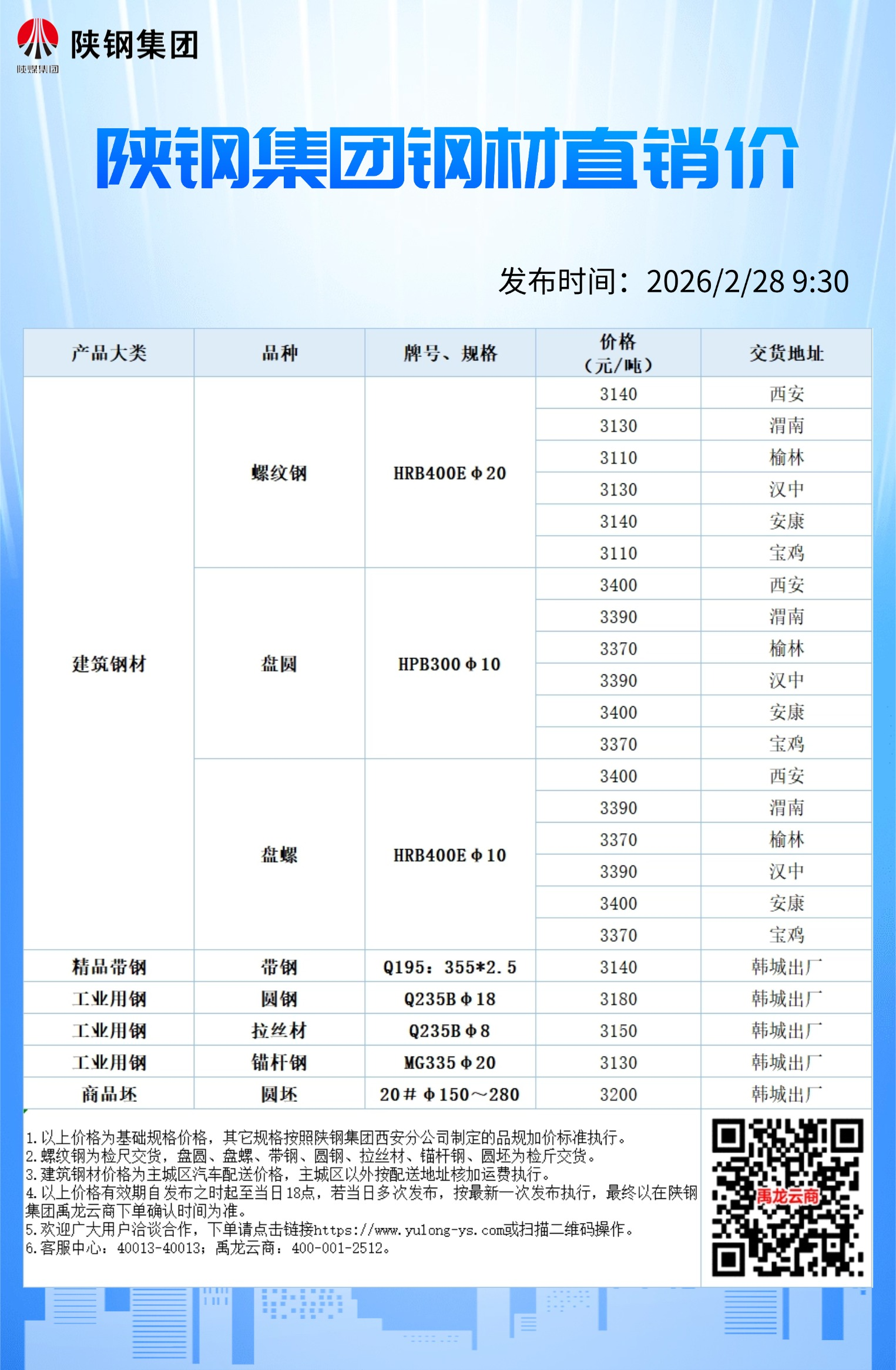 2月28日陕钢集团钢材直销价格信息
