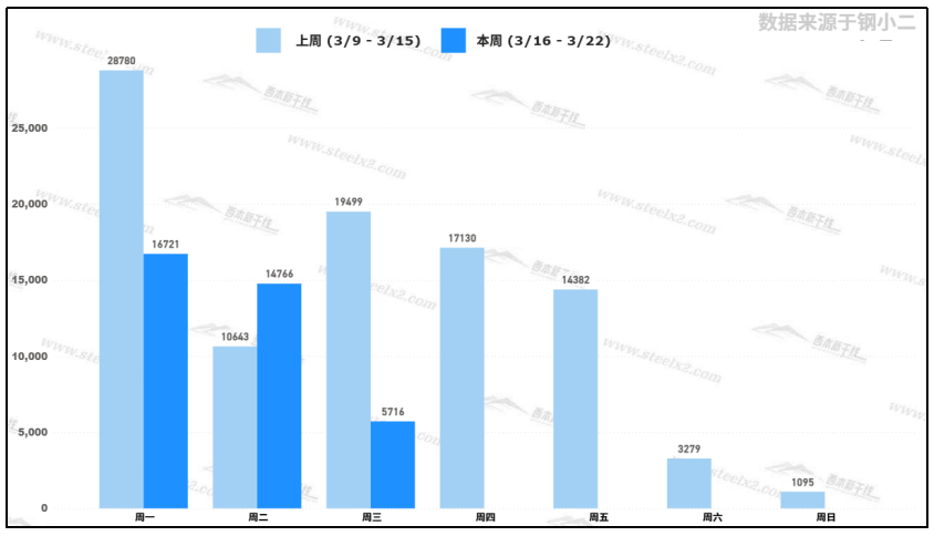 据钢小二平台样本数据,3月18日采样全国工程需求量为5716吨,较上个交易日环比下降明显。
