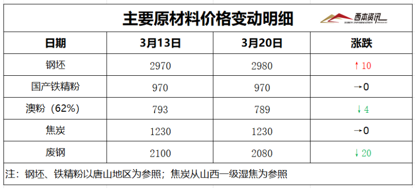 2026年03月20日14:10 来源:西本资讯摘要:综合来看,库存下降迎来拐点,中东地缘政治扰动,进口矿和焦煤价格偏强,生产成本存有支撑,季节性需求改善,但期货切换频繁,市场操作谨慎等,预计,下周(3月23日-3月27日)市场价格震荡整理运行,整体幅度为-40-40元/吨。