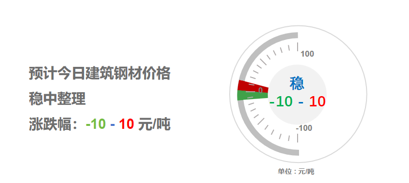 上周五开市,早盘期螺震荡上涨,多数钢企维持平盘,终端用户按需采购;午后盘面延续走强,钢坯报价小幅探涨,多地建筑钢材收市价以稳为主。夜盘期螺偏弱整理,美伊谈判未达成协议,资本谨慎盘面摇摆,成交需求略有放量,南方多地阴天有雨,市场操作谨慎等,预计,今日全国大部建筑钢材价格稳中整理,幅度-10-10。【易连资讯提供】