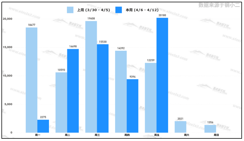 据钢小二平台样本数据,4月10日采样全国工程需求量为20,180吨,较上一个交易日需求增加。