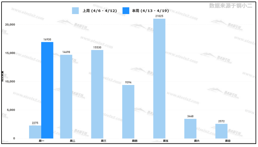 据钢小二平台样本数据,4月13日采样全国工程需求量为16,930吨,较上一个交易日需求略降。